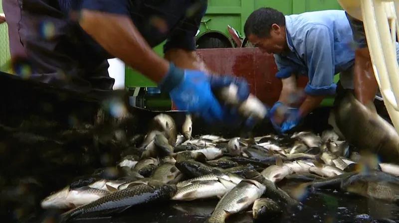 在陸基集裝箱綠色生態(tài)循環(huán)水高效養(yǎng)殖示范基地,工人們正在忙著“出魚”,捕撈、抬筐、過秤......一片忙碌景象。